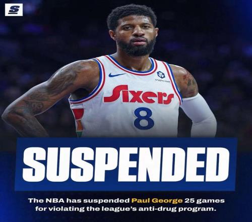 NBA官方宣布,76人队前锋保罗·乔治因违反联盟禁药规定,被禁赛25场。本赛季,保罗·乔治出战27场,场均得到16分5.2篮板3.7助攻1.5抢断0.5盖帽。