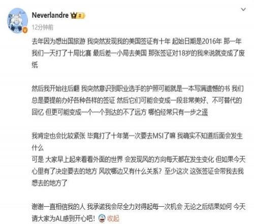 电竞资讯6月10日称 在AL晋级MSI和第二赛段决赛后Flandre发表长文,AL经理爱笑进行转发并评论道: