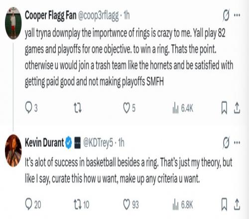 网友:你们都淡化总冠军重要性!KD:除了戒指篮球还有很多成功点